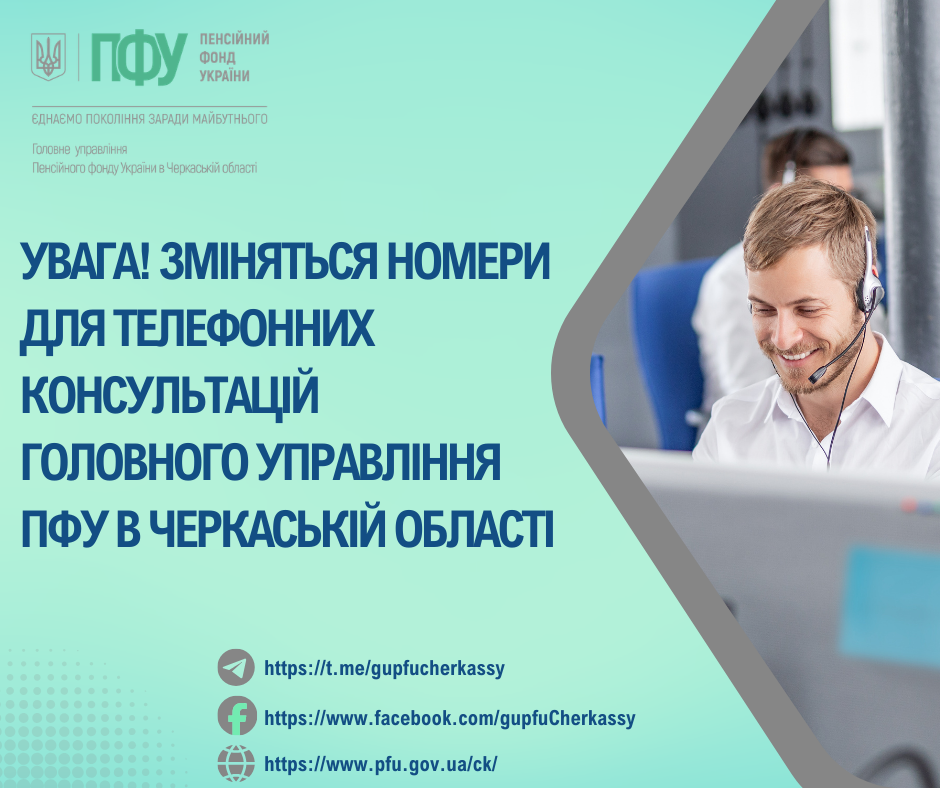 Увага! Зміняться номери для телефонних консультацій Головного управління Пенсійного фонду України в області
