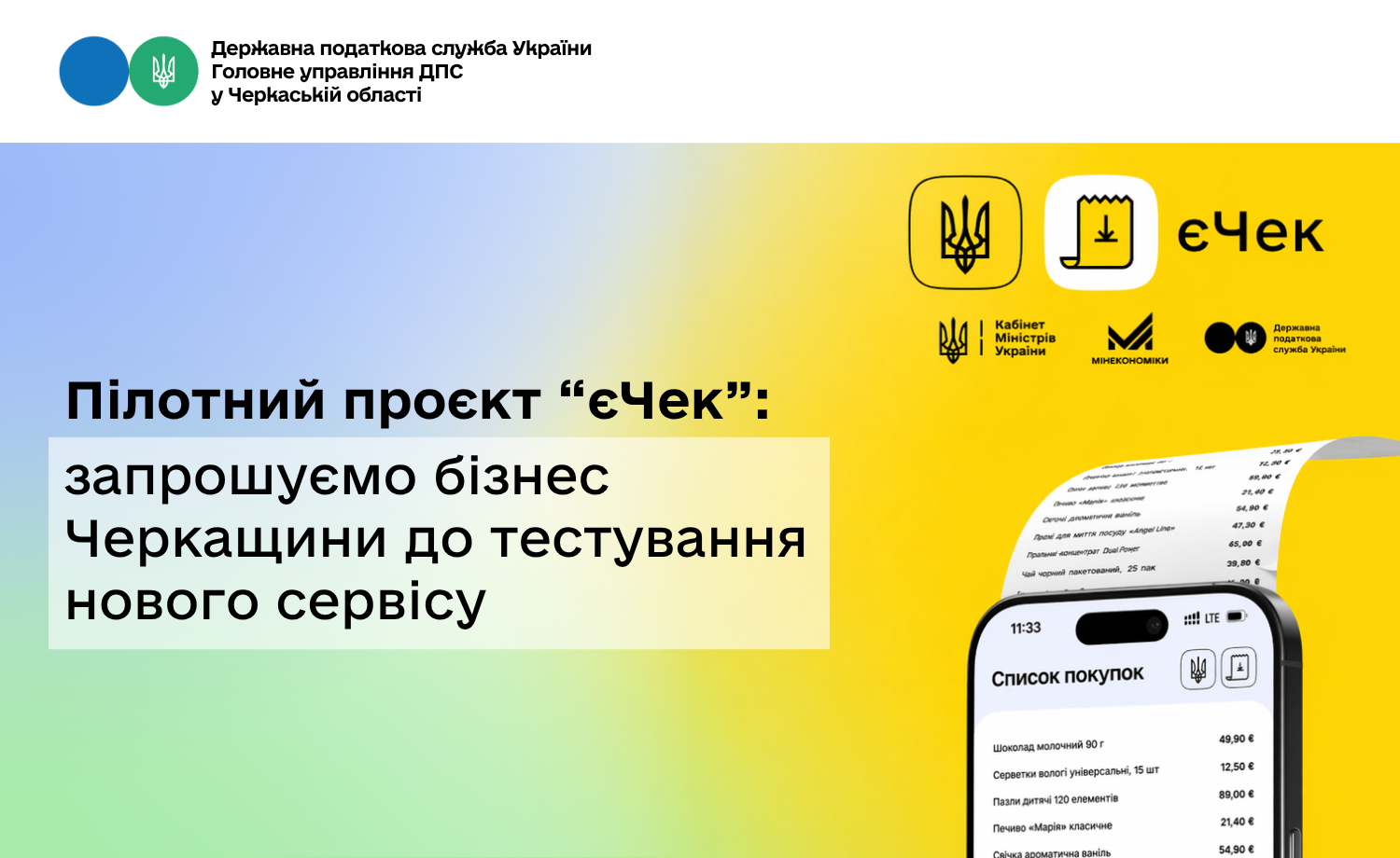 Пілотний проєкт «єЧек»: запрошуємо бізнес Черкащини до тестування нового сервісу