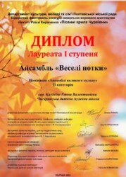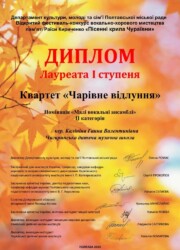 Чигиринщину в цьому конкурсі представляли зразковий вокальний ансамбль “Веселі нотки” та квартет “Чарівне відлуння” Чигиринської дитячої музичної школи (керівник Anna Kalinina), де вибороли перемогу.