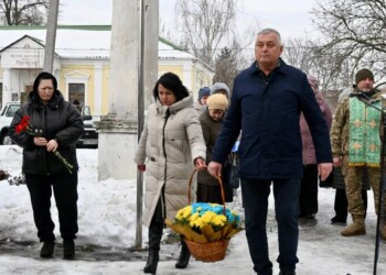 Сьогодні, у четверту річницю повномасштабного вторгнення біля пам’ятного місця зібралися представники влади, жителі громади та рідні загиблих Захисників України. Кожен прийшов із власним болем і вдячністю — щоб схилити голову перед подвигом тих, хто віддав життя за свободу і незалежність нашої держави.