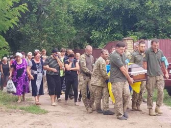 З подвір’я рідного дому військовослужбовця Валентина Коваленка траурна процесія вирушила на місцеве кладовище, де захисника поховали з усіма військовими почестями.