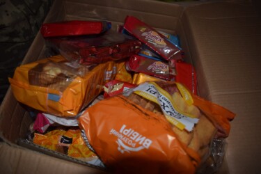 Небайдужі мешканці нашого міста збирають та передають захисникам продукти харчування: крупи, олію, яйця, хліб, печиво, яблука, консерви, тощо. В черговий раз військовослужбовцям передали понад 87 кілограм продукції.