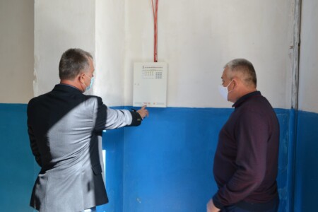 22 вересня міський голова Віктор Харченко і начальник відділу освіти, культури, туризму, молоді та спорту Віталій Синяков здійснили візит в школу села Тіньки, де перевірили хід виконання робіт з монтажу протипожежної сигналізації.