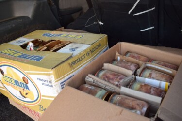 Цього разу для військових, які перебувають в Десні ми передали курячу тушонку. Нехай їм буде смачно.