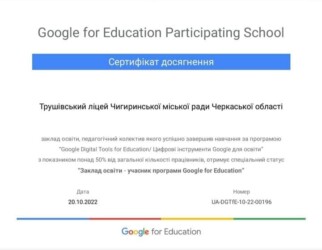 Педагогічний колектив Трушівського ліцею успішно завершив навчання за програмою “Google Digital Tools for Education/ Цифрові інструменти Google для освіти”.