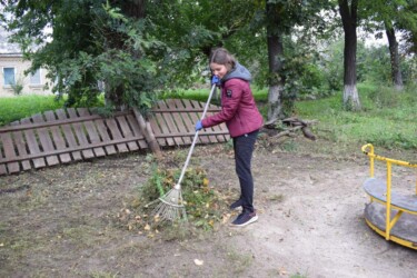 Розпочали прибирання із дитячого майданчика, де дітки проводять дозвілля.