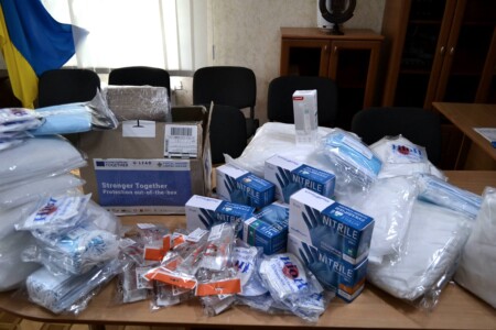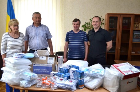 Отримані від благодійників засоби індивідуального захисту – захисні маски, костюми біологічного захисту, дезінфікуючі засоби, захисні окуляри, респіратори, оглядові рукавички, міський голова Віктор Харченко передав головному лікарю комунального некомерційного підприємства «Чигиринська багатопрофільна лікарня» Чигиринської районної ради Ігорю Огиренку для використання медичним персоналом закладу.
