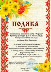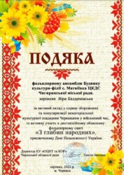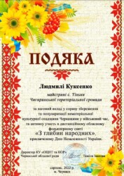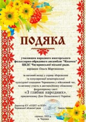 Подяками за активну участь в дистанційному обласному фольклорному святі «З глибин народних», відзначено: